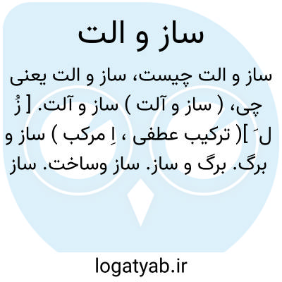 ( ساز و آلت ) ساز و آلت. [ زُ ل َ ]( ترکیب عطفی، اِ مرکب ) ساز و برگ. برگ و ساز. ساز وساخت. ساز و سلاح. سلیح و ساز. تجهیزات:
