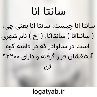 ( سانتاآنا ) سانتاآنا. ( اِخ ) نام شهری است در سالوادر که در دامنه کوه آتشفشان قرار گرفته و دارای 92200 تن سکنه است. معادن مس، نقره و سرب دارد.