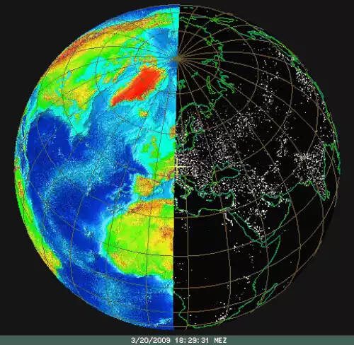{terminator} [نجوم] خط جداکنندۀ بخش های تاریک و روشن سیاره یا قمر