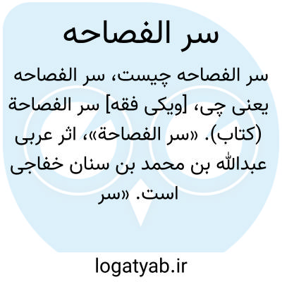 [ویکی فقه] سر الفصاحه (کتاب). «سر الفصاحة»، اثر عربی عبدالله بن محمد بن سنان خفاجی است.
