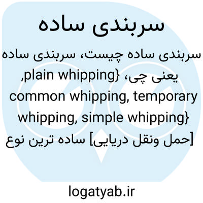 {plain whipping, common whipping, temporary whipping, simple whipping} [حمل ونقل دریایی] ساده ترین نوع سربندی که در آن رشته ای نازک را برای استفادۀ موقت به دور طناب اصلی می پیچند