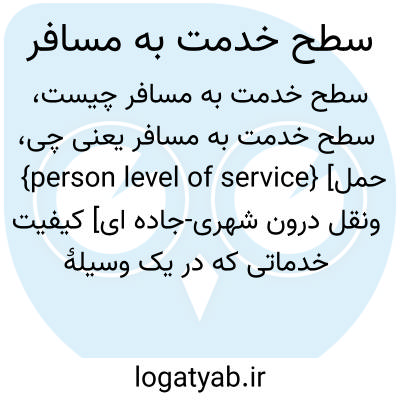 {person level of service} [حمل ونقل درون شهری-جاده ای] کیفیت خدماتی که در یک وسیلۀ نقلیۀ عمومی به مسافران ارائه میشود که با توجه به فضای موجود برای هر مسافر تعیین میشود