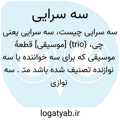 {trio} [موسیقی] قطعۀ موسیقی که برای سه خواننده یا سه نوازنده تصنیف شده باشد متـ. سه نوازی