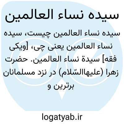 [ویکی شیعه] سیدة نساء العالمین. سیدة نساء العالمین به معنای سرور زنان دو جهان از القاب حضرت فاطمه زهرا(س). این لقب توسط پیامبر اکرم(ص) به حضرت زهرا(س) اعطا شد، امام علی(ع) نیز فاطمه(س) را به این لقب خوانده است.