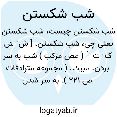 شب شکستن. [ ش َ ش ِ ک َ ت َ ] ( مص مرکب ) شب به سر بردن. مبیت. ( مجموعه مترادفات ص 221 ). به سر شدن و به سر کردن شب. ( بهار عجم ):