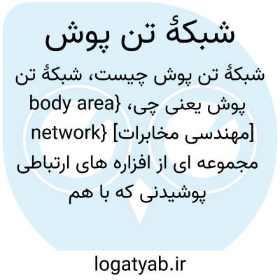 {body area network} [مهندسی مخابرات] مجموعه ای از افزاره های ارتباطی پوشیدنی که با هم مجموعه ای یکپارچه از خدمات شخصی سازی شده را برای کاربر فراهم می کنند اختـ. شب تن BAN