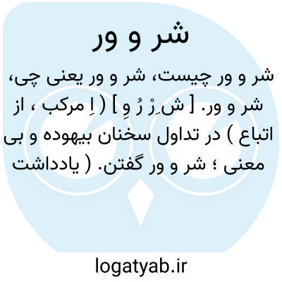 شر و ور. [ ش ِرْ رُ وِ ] ( اِ مرکب، از اتباع ) در تداول سخنان بیهوده و بی معنی؛ شر و ور گفتن. ( یادداشت مؤلف ). حرف مفت و دری وری و چرند و پرنداست. کلمه فرانسوی شریور که لفظاً به این کلمه بی شباهت نیست در زبان فرانسوی به همین معنی بکار می رود. ( فرهنگ لغات عامیانه ).