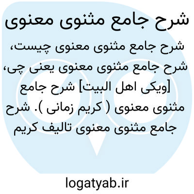 [ویکی اهل البیت] شرح جامع مثنوی معنوی ( کریم زمانی ). شرح جامع مثنوی معنوی تالیف کریم زمانی در قرن معاصر است. شرح جامع مثنوی معنوی کتاب حجیم است. کتاب در هفت جلد نگارش شده است. در این کتاب از شروح دیگر مثنوی معنوی , استفاد فراوان شده است. کریم زمانی در شرح جامع مثنوی معنوی , از آیات قرآن استفاده کرده است. مولف از تفسیر به رأی اجتناب کرده است. مولف با زبان علمی , مثنوی معنوی را شرح کرده است. مولف با بیان ساده و روان , شرح جامع مثنوی معنوی را نگارش کرده است. این کتاب از شروح مهم بر مثنوی معنوی ِ مولوی است.