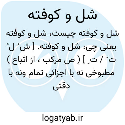 شل و کوفته. [ ش ُ ل ُ ت َ / ت ِ ] ( ص مرکب، از اتباع ) مطبوخی نه با اجزائی تمام ونه با دقتی در حد پختن آن. پلویی بد پخته که آب بسیار دارد. ( یادداشت مؤلف ). رجوع به شل و شفته شود.