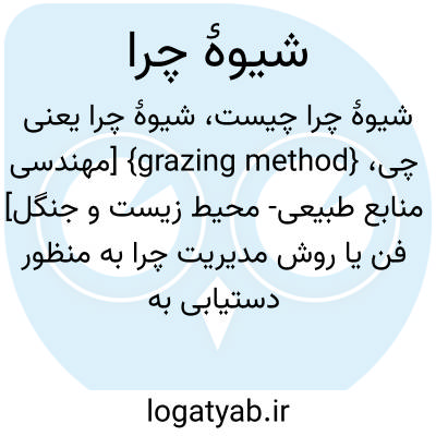 {grazing method} [مهندسی منابع طبیعی- محیط زیست و جنگل] فن یا روش مدیریت چرا به منظور دستیابی به اهداف پیش بینی شده