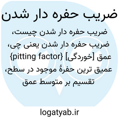 {pitting factor} [خوردگی] عمق عمیق ترین حفرۀ موجود در سطح، تقسیم بر متوسط عمق حفره ها که براساس آن میزان کاهش وزن محاسبه می شود