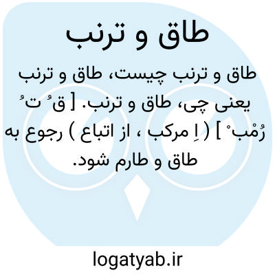 طاق و ترنب. [ ق ُ ت ُ رُمْب ْ ] ( اِ مرکب، از اتباع ) رجوع به طاق و طارم شود.
