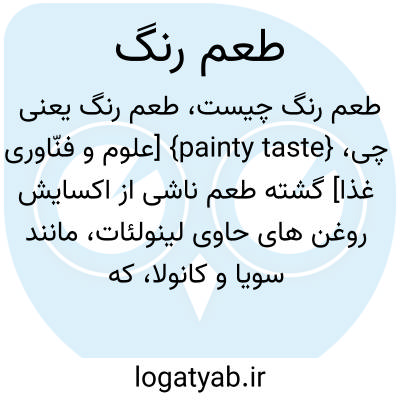 {painty taste} [علوم و فنّاوری غذا] گشته طعم ناشی از اکسایش روغن های حاوی لینولئات، مانند سویا و کانولا، که براثر حرارت بسیار بالا ایجاد می شود