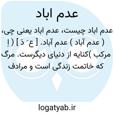 ( عدم آباد ) عدم آباد. [ ع َ دَ ] ( اِ مرکب )کنایه از دنیای دیگرست. مرگ که خاتمت زندگی است و مرادف با عدم خانه و عدم زار و عدم گاه است: