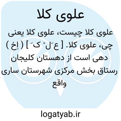 علوی کلا. [ ع َل ْ ک َ ] ( اِخ ) دهی است از دهستان کلیجان رستاق بخش مرکزی شهرستان ساری واقع در 17 هزارگزی جنوب خاوری ساری مقابل هولار. ناحیه ای است کوهستانی و جنگلی دارای آب و هوای معتدل و مرطوب و مالاریایی. سکنه آن 125 تن است. آب آن از رودخانه تجن تأمین میشود. محصول آن برنج و غلات است. اهالی به زراعت اشتغال دارند. راه آن مالرو است. ( از فرهنگ جغرافیایی ایران ج 3 ).