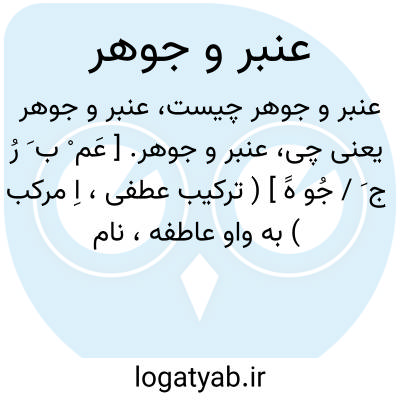 عنبر و جوهر. [ عَم ْ ب َ رُ ج َ / جُو هََ ] ( ترکیب عطفی، اِ مرکب ) به واو عاطفه، نام غلامان است. ( آنندراج ) ( غیاث اللغات ).