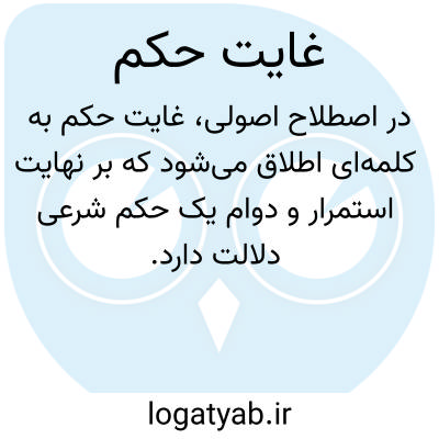 در اصطلاح اصولی، غایت حکم به کلمهای اطلاق میشود که بر نهایت استمرار و دوام یک حکم شرعی دلالت دارد. این عبارت، در مقابل غایت موضوع قرار میگیرد و بهعنوان قیدی برای خود حکم محسوب میشود، نه برای موضوع آن. وظیفهٔ اصلی آن، مشخص کردن مدت و محدودهٔ زمانیِ اجرای حکم است. در مباحث مربوط به مفهوم غایت، برخی از اصولیان میان غایت موضوع و غایت حکم تمایز قائل شدهاند. بر اساس این دیدگاه، اگر کلمهای بیانکنندهٔ غایت حکم باشد، دارای مفهوم بوده و بر انتفا و پایان یافتن حکم پس از رسیدن به آن غایت دلالت میکند؛ برای مثال، اگر گفته شود تا زمان طلوع آفتاب نماز بخوان، واژهٔ «تا» به عنوان غایت حکم، بیان میکند که حکم وجوب نماز با رسیدن به آن زمان خاص پایان میپذیرد.