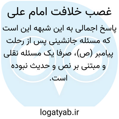 [ویکی فقه] غصب خلافت امام علی (عوامل). ادله متعدد و متقنی از حقانیت جانشینی امیرالمؤمنین (علیه السّلام) پس از پیامبر (صلی الله علیه و آله وسلّم)، در منابع شیعه و سنی وجود دارد. با وجود چنین دلایل واضحی این سوال پیش می آید که چرا خلافت، به امیرالمؤمنین (علیه السّلام) نرسید؟ در این مقاله به بررسی این شبهه می پردازیم.