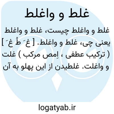 غلط و واغلط. [ غ َ طُ غ َ ] ( ترکیب عطفی، اِمص مرکب ) غلت و واغلت. غلطیدن از این پهلو به آن پهلو. به درازا بر زمین از پهلویی بر پهلویی پیاپی گشتن، چون کسی که شکم او سخت درد کند. با «خوردن » و «زدن » صرف میشود: