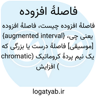 {augmented interval} [موسیقی] فاصلۀ درست یا بزرگی که یک نیم پردۀ کروماتیک (chromatic ) افزایش یافته باشد