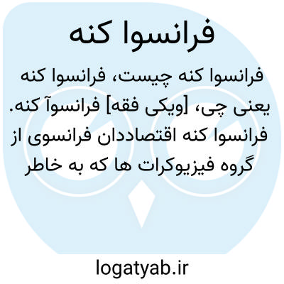 [ویکی فقه] فرانسوآ کنه. فرانسوا کنه اقتصاددان فرانسوی از گروه فیزیوکرات ها که به خاطر انتشار کتاب میز اقتصاد در سال ۱۷۵۸ میلادی مشهور شده و در سال ۱۷۷۷ وفات یافت.