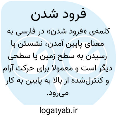 کلمه‌ی «فرود شدن» در فارسی به معنای پایین آمدن، نشستن یا رسیدن به سطح زمین یا سطحی دیگر است و معمولاً برای حرکت آرام و کنترل‌شده از بالا به پایین به کار می‌رود. این واژه در کاربردهای مختلف مانند پرواز هواپیما، فرود فضاپیما، یا حتی پایین آمدن افراد و اشیاء از ارتفاع استفاده می‌شود و نشان‌دهنده توقف ایمن و دقیق در مقصد است. فرود شدن می‌تواند هم به صورت فیزیکی و واقعی باشد و هم به شکل استعاری برای رسیدن به مرحله‌ای مشخص یا پایان یک مسیر به کار رود. همچنین این واژه با مفاهیمی مانند نشستن، پایین آمدن، سقوط کنترل‌شده و رسیدن به مقصد هم‌معنی است و در مکالمات روزمره و متون تخصصی کاربرد فراوان دارد. به طور کلی، «فرود شدن» عملی است که حرکت از ارتفاع یا سطح بالاتر به سطح پایین‌تر را با کنترل و ایمنی انجام می‌دهد و در زندگی روزمره و حوزه‌های فنی و علمی اهمیت زیادی دارد.
