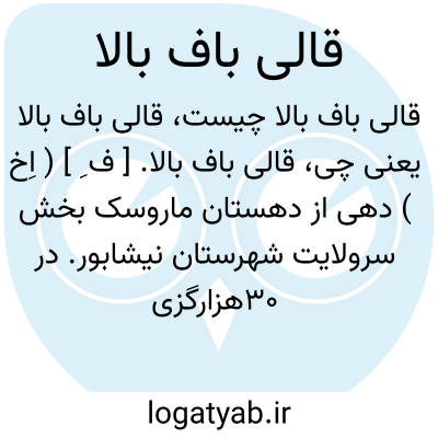 قالی باف بالا. [ ف ِ ] ( اِخ ) دهی از دهستان ماروسک بخش سرولایت شهرستان نیشابور. در 30هزارگزی جنوب خاوری چکنه بالا واقع است. موقع جغرافیائی آن کوهستانی و معتدل است. 81 تن سکنه دارد. آب آن از قنات و محصولات آن غلات، تریاک و شغل اهالی زراعت است.راه مالرو دارد. ( از فرهنگ جغرافیایی ایران ج 9 ).
