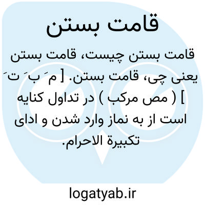 قامت بستن. [ م َ ب َ ت َ ] ( مص مرکب ) در تداول کنایه است از به نماز وارد شدن و ادای تکبیرة الاحرام.