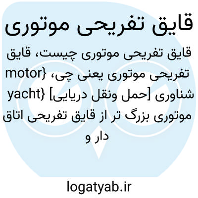 {motor yacht} [حمل ونقل دریایی] شناوری موتوری بزرگ تر از قایق تفریحی اتاق دار و با امکانات رفاهی و اقامتی مناسب
