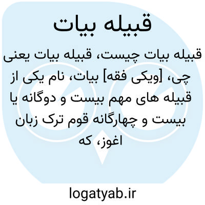 [ویکی فقه] بیات، نام یکی از قبیله های مهم بیست و دوگانه یا بیست و چهارگانه قوم ترک زبان اغوز، که گاه در منابع مطابق تلفظ ترکی آن، به صورت «بایات» ضبط شده است.