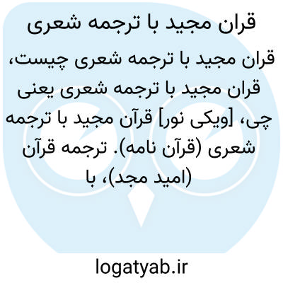 [ویکی نور] قرآن مجید با ترجمه شعری (قرآن نامه). ترجمه قرآن (امید مجد)، با نام «قرآن نامه»، ترجمه فارسی قرآن به گونه منظوم است و توسط امید مجد صورت گرفته است.