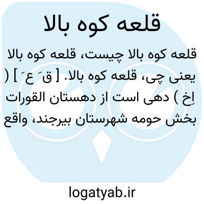 قلعه کوه بالا. [ ق َ ع َ ] ( اِخ ) دهی است از دهستان القورات بخش حومه شهرستان بیرجند، واقع در 30هزارگزی شمال خاوری بیرجند. موقع جغرافیایی آن کوهستانی و معتدل است. سکنه آن 99 تن است. آب آن از قنات و محصول آن غلات، میوه جات و شغل اهالی زراعت و صنایع دستی زنان کرباس بافی است.راه مالرو دارد. ( از فرهنگ جغرافیایی ایران ج 9 ).