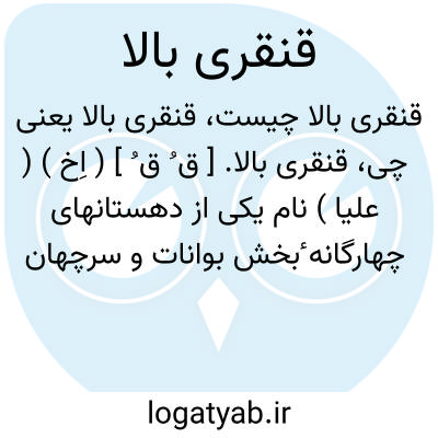 قنقری بالا. [ ق ُ ق ُ ] ( اِخ ) ( علیا ) نام یکی از دهستانهای چهارگانه ٔبخش بوانات و سرچهان شهرستان آباده. حدود و مشخصات آن: از شمال گردنه کولی کش و دهستان سورمق از جنوب دهستان قنقری پائین و ارتفاعات قادرآباد از خاور دهستان حومه بخش از باختر دهستان خنگشت. موقع آن کوهستانی است این دهستان تقریباً در شمال باختری بخش واقع و هوای آن معتدل بالنسبه سرد، آب مشروب و زراعتی آن از رودخانه قشلاق و چشمه و قنات است. محصولات آن عبارتند از: غلات، چغندر، حبوبات، و جزئی میوه جات. شغل اهالی، زراعت و پیله وری وصنعت دستی زنان قالی بافی است. از 32 آبادی بزرگ و کوچک تشکیل یافته، مرکز آن قریه ده بید میباشد. نفوس در حدود 6600 تن و قراء مهم آن عبارتند از: قشلاق خرمی، علی آباد کوشک، مشکان. شوسه شیراز به اصفهان از وسط دهستان کشیده شده و طوایف مختلفه عرب در حدود دهستان ییلاق میکنند. ( از فرهنگ جغرافیایی ایران ج 7 ).