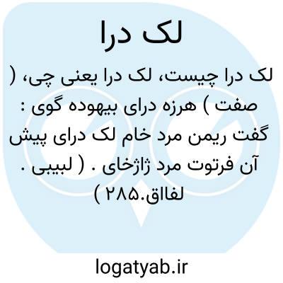 هرزه درا، بیهوده گو: گفت ریمن مرد خام لک درای / پیش آن فرتوت پیر ژاژخای (لبیبی: لغت نامه: لک درای ).