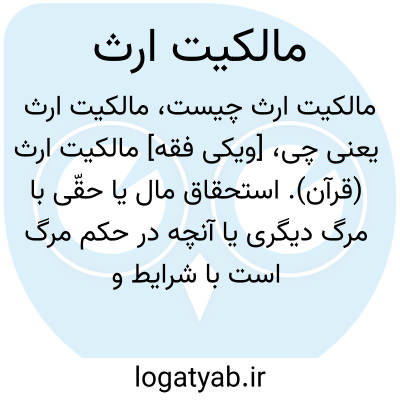 [ویکی فقه] مالکیت ارث (قرآن). استحقاق مال یا حقّی با مرگ دیگری یا آنچه در حکم مرگ است با شرایط و ملاک های خاص را ارث گویند.