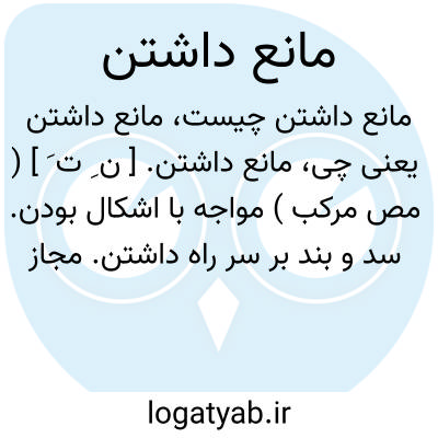 مانع داشتن. [ ن ِ ت َ ] ( مص مرکب ) مواجه با اشکال بودن. سد و بند بر سر راه داشتن. مجاز نبودن. اشکال داشتن: مانعی ندارد ( در تداول فارسی معاصر )؛ اشکالی ندارد. عیبی ندارد. مجاز است.