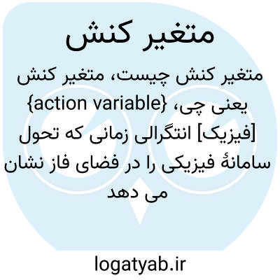 {action variable} [فیزیک] انتگرالی زمانی که تحول سامانۀ فیزیکی را در فضای فاز نشان می دهد متـ. انتگرال کنش action integral