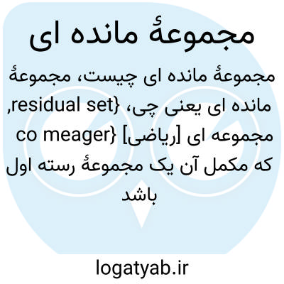 {residual set, co meager} [ریاضی] مجموعه ای که مکمل آن یک مجموعۀ رسته اول باشد
