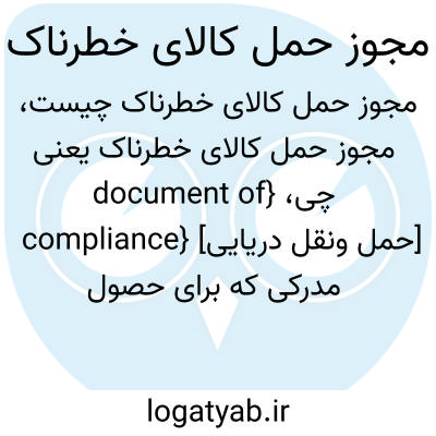 {document of compliance} [حمل ونقل دریایی] مدرکی که برای حصول اطمینان از انطباق وضعیت انبارهای کشتی با مقررات و الزامات آیین نامۀ حمل کالای خطرناک صادر میشود