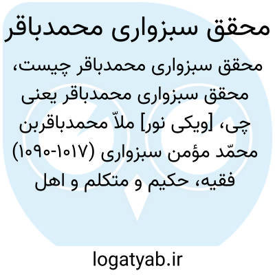 💡 محمدباقر سبزواری معروف به محقق سبزواری (۹۸۷ خ/۱۰۱۷ ق - ۱۰۵۸ خ/۱۰۹۰ ق)، مؤلّف «کفایة الاحکام» در علم فقه، از علماء و فقهای شیعه در قرن یازدهم هجری، شیخالاسلام و امام جمعه اصفهان بودهاست.