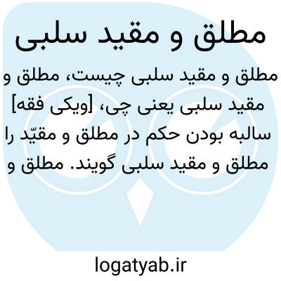 [ویکی فقه] سالبه بودن حکم در مطلق و مقیّد را مطلق و مقید سلبی گویند. مطلق و مقید از نظر اتفاق و اختلاف، کیفیت و سبب حکم اقسامی دارد که به لحاظ حمل مطلق بر مقید یا عدم آن، احکام آن متفاوت می گردد. تعریف مطلق و مقید سلبی آن است که هر دو حکم حکم مطلق و مقید حکم سلبی باشد، چه از لحاظ حکم و سبب آن با هم مخالف باشند یا موافق، مانند:۱. اختلاف در حکم و اتفاق در سبب: «لا تکرم عالما»، «لا تطعم عالما فقیرا» (که به هر دو عمل می شود)؛۲. اتفاق در حکم و سبب: «لاتکرم عالما»، «لاتکرم عالما فاسقا» و: «لا تعتق رقبة»، «لا تعتق رقبة کافرة» (که به هر دو عمل می شود).