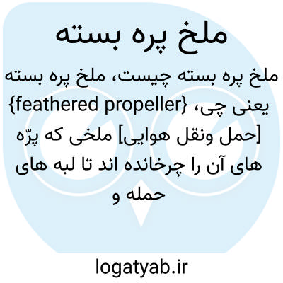 {feathered propeller} [حمل ونقل هوایی] ملخی که پرّه های آن را چرخانده اند تا لبه های حمله و فرار تقریباً با خط سیر پرواز هواگَرد موازی شود و پَسار به حداقل برسد و مانع از چرخش موتور شود
