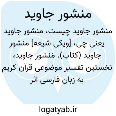 [ویکی شیعه] منشور جاوید (کتاب). مَنشور جاوید، نخستین تفسیر موضوعی قرآن کریم به زبان فارسی اثر جعفر سبحانی، از مراجع تقلید. در این کتاب حدود بیست موضوع از مباحث عقلی، اجتماعی و اخلاقی قرآن کریم بررسی شده است.