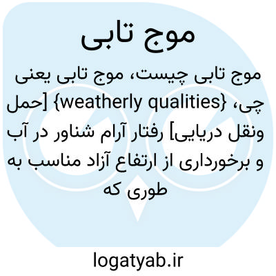 {weatherly qualities} [حمل ونقل دریایی] رفتار آرام شناور در آب و برخورداری از ارتفاع آزاد مناسب به طوری که موج و باد تأثیر چندانی بر آن نگذارند