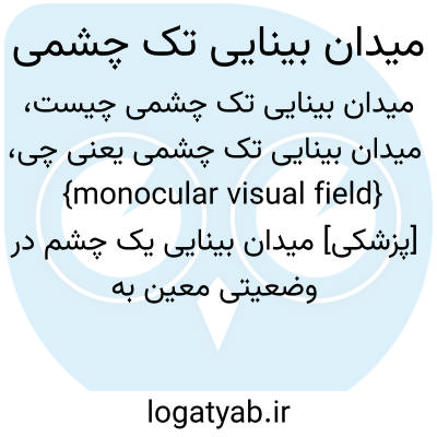 {monocular visual field} [پزشکی] میدان بینایی یک چشم در وضعیتی معین به خصوص در وضعیت رؤیت مستقیم به جلو