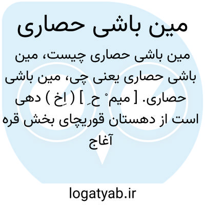 مین باشی حصاری. [ میم ْ ح ِ ] ( اِخ ) دهی است از دهستان قوریچای بخش قره آغاج شهرستان مراغه، واقع در 44 کیلومتری جنوب غربی قره آغاج. کوهستانی و آب و هوایش معتدل. سکنه ٔآن بالغ بر 150 تن است. آب آن از چشمه و محصول آنجاغلات، نخود و بزرک. شغل اهالی زراعت و صنایع دستی زنان جاجیم بافی است. ( از فرهنگ جغرافیائی ایران ج 4 ).