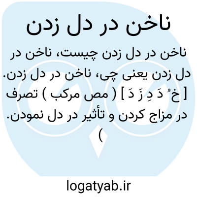 ناخن در دل زدن. [ خ ُ دَ دِ زَ دَ ] ( مص مرکب ) تصرف در مزاج کردن و تأثیر در دل نمودن. ( شمس اللغات ). رجوع به ناخن بر دل زدن شود.