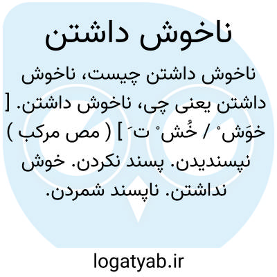 ناخوش داشتن. [ خوَش ْ / خُش ْ ت َ ] ( مص مرکب ) نپسندیدن. پسند نکردن. خوش نداشتن. ناپسند شمردن. کراهت داشتن. استنکار. تسخط. تطهم. || تنغیص. ناگوار کردن. تباه کردن. مکدر کردن: