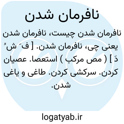 ( مصدر ) عصیان کردن فرمان نبردن: [ و عصینا و نافرمان شدیم.] مقابل فرمانبردارشدن فرمان بردن.