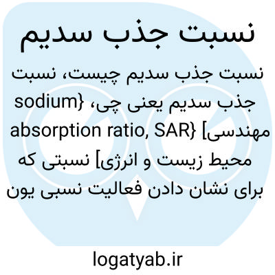 {sodium absorption ratio, SAR} [مهندسی محیط زیست و انرژی] نسبتی که برای نشان دادن فعالیت نسبی یون های سدیم در آب آبیاری در واکنش های تبادل یون با خاک به کار می رود